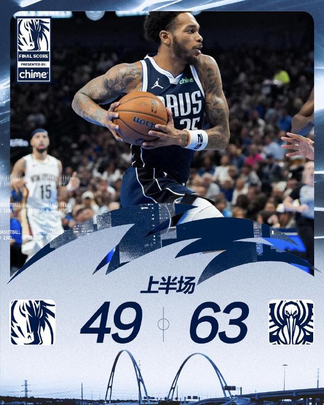 次节比赛,鹈鹕率先扩大45-33领先12分优势,独行侠连追5分,鹈鹕回敬一波8-0攻势,已经扩大53-38领先15分优势。独行侠打出一波11-3攻势追到仅差7分,鹈鹕继续打出一波7-0攻势拉开比分。鹈鹕单节29-24净胜5分,上半场结束鹈鹕63-49领先独行侠14分优势。前两节比赛,墨菲15分与费尔斯3记三分13分,华盛顿3记三分14分与哈迪3记三分11分。